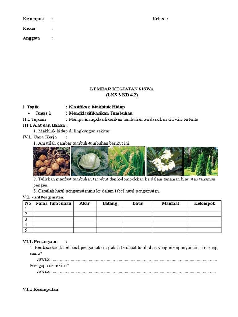 Nama Tumbuhan Ciri-ciri Akar Batang Daun Manfaat Kelompok