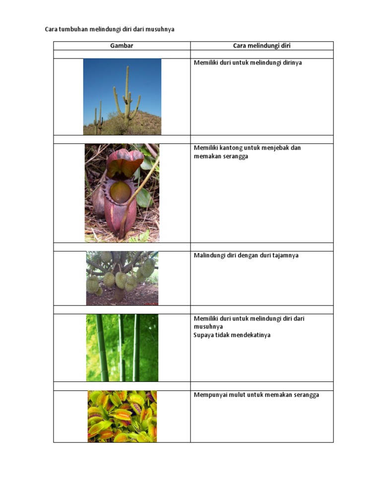 Contoh Tumbuhan Dan Cara Melindungi Diri