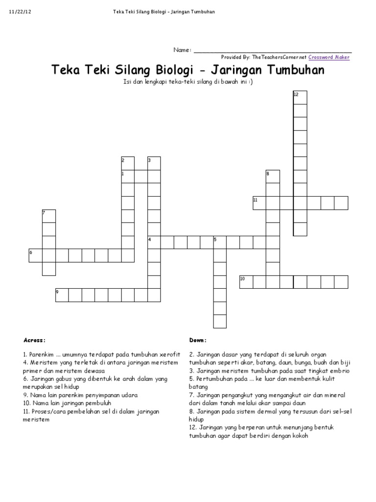 Soal Teka Teki Silang Nama Nama Tumbuhan Bimbel Brilian