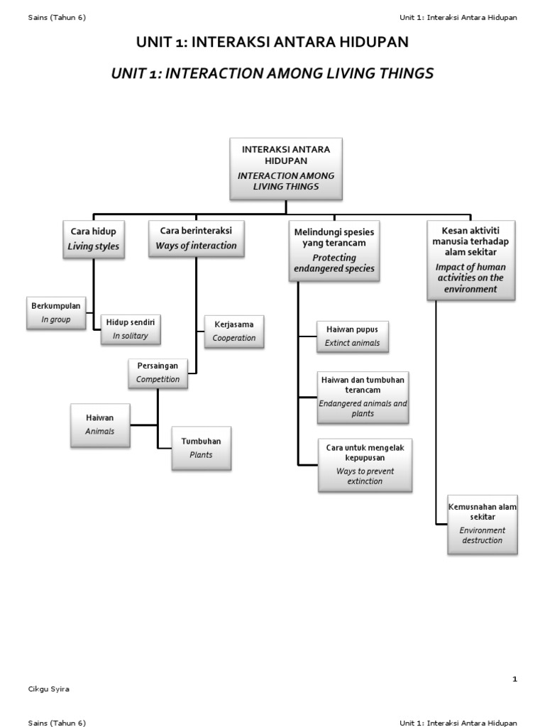 Sains Tahun 6 Unit 1 Interaksi Antara Hidupan Dwibahasa Bilingual